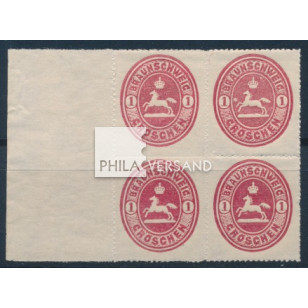 Wappen 1865 - 1 Groschen im Viererblock vom linken Bogenrand, jede Marke einwandfrei postfrisch mit voller Originalgummierung und perfektem Durchstich
