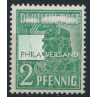 Arbeiter 1947 - 2 Pfennig im Probedruck in gelbgrün, einwandfrei postfrisch und tiefst geprüft Schle..