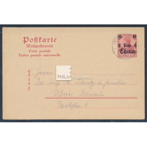 Itschang 1907 - immer gesuchter Stempel zart abgeschlagen auf 4 Cents Germania Wertstempel auf Postkarte ohne Wasserzeichen gesendet mit Kartentext offenbar nach Ulm, sehr gute Bedarfserhaltung