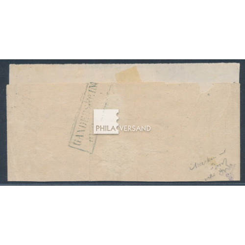 Wappen 1866 - 1/3 Groschen als extrem seltene 1 Groschen Frankatur in Form eines senkrechten Paares und einer Einzelmarke auf kleiner Drucksachenschleife, mehrfach sauber gestempelt " Braunschweig 10.Sep. 1866 " und gesendet nach Gandersheim (rückseitig Ankunftstempel), tolles Angebot mit Expertise Bühler