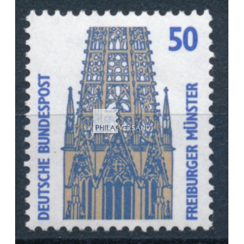 Sehenswürdigkeit 1987 - 50 Pfennig auf Mischpapier mit Melierfasern und rückseitiger Zählnummer