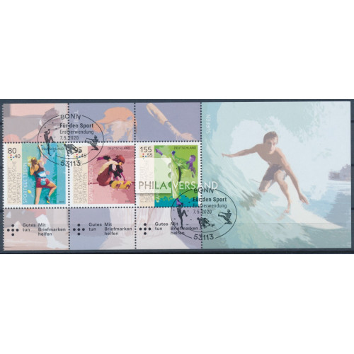 Für den Sport 2020 - Heftchenblatt, ungefaltet von der Versandstelle und mit Ersttagssonderstempeln
