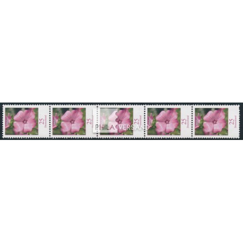 Blumen 2005 - 25 Cent im senkrechten 5-er Streifen mit Zählnummer, übliche Rollenzähnung
