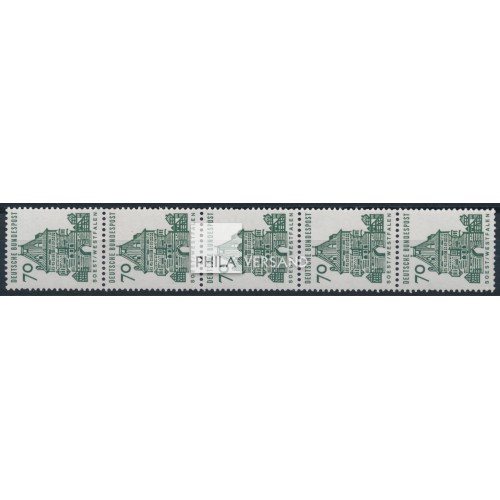 Bauwerke 1964 - 70 Pfennig im Fünferstreifen mit Zählnummer, einwandfrei postfrisch