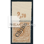 Reichspost 1901 - 5 Mark in Type II und mit Aufdruck China, einwandfrei postfrisch vom Bogenrand und..