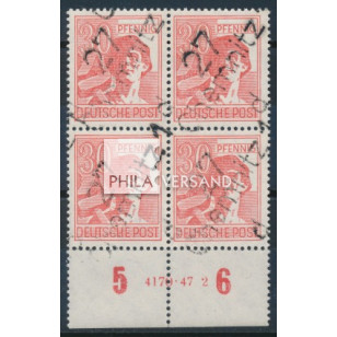 Bezirkshandstempel 1948 - 30 Pfennig im einwandfrei postfrischen Viererblock aus dem Bezirk 27 mit vollständiger Hausauftragsnummer und tiefst geprüft Herbst, BPP und Dr. Böheim, BPP