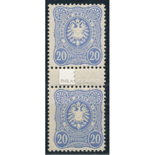 PFENNIG 1885 - 20 Pfennig in besserer Farbe und mit seltenem Plattenfehler, einwandfrei postfrisch im senkrechten Stegpaar und mit Attest Petry, BPP
