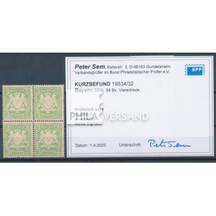 Wappen 1888 - 3 Pfennig einwandfrei postfrisch im Viererblock und mit Befund Sem, BPP