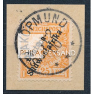 Adler 1899 - 25 Pfennig in Farbe a auf kleinem Briefstück und perfekt gestempelt " Swakopmund 3/2 00..