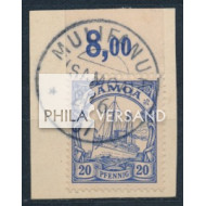 Yacht 1906 - 20 Pfennig auf kleinem Briefstück mit besserem und ausgezeichnet abgeschlagenem Stempel..