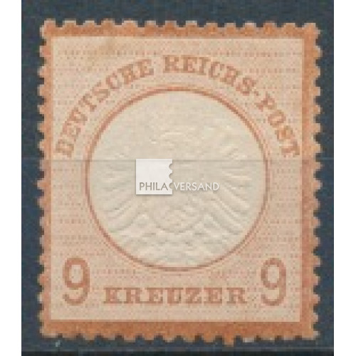 großer Brustschild 1872 - 9 Kreuzer, im oberen Bereich teils ohne Gummierung, im unteren Bereich mit vollständiger Originalgummierung und signiert Georg Bühler, üblich raue Zähnung