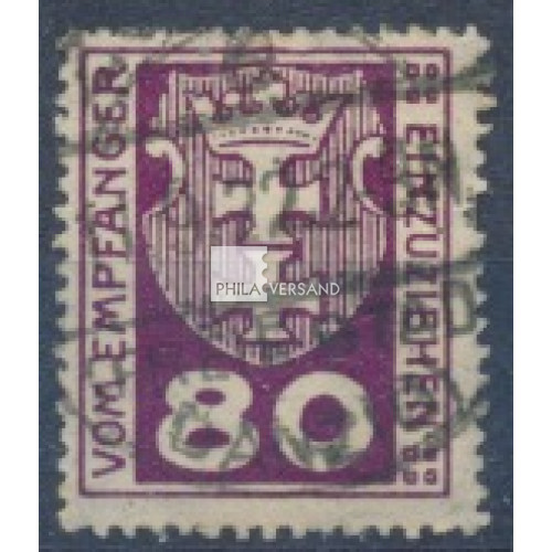 Portomarke Wappen 1921 - 80 Pfennig in besserer Farbe, gute gestempelte Erhaltung und geprüft Infla Berlin