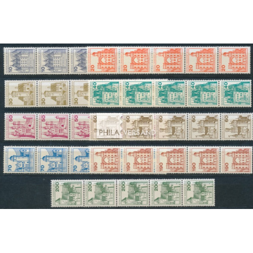 castles 1977 - perfect mint never hinged strips of 5 with reverse numbers