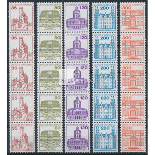 castles 1982 - strips of 5 with reverse numbers