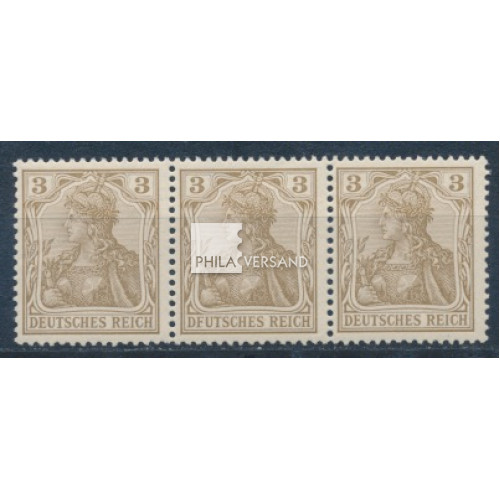 Germania 1902 - 3 Pfennig in a horizontal strip of three stamps, the middle piece with better plate variety " DFUTSCHES Reich ", perfect mint never hinged quality and with two normal stamps a rare offer