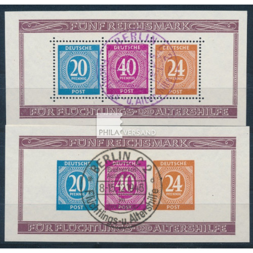 charity souveneer sheets 1946 - perfect used quality with special postmarks and expertized by Schlegel, BPP