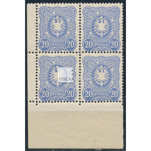 PFENNIG 1885 - 20 Pfennig 1st printing in a very rare mint never hinged blk. of four from left below sheet corner and with certificate by Petry, BPP