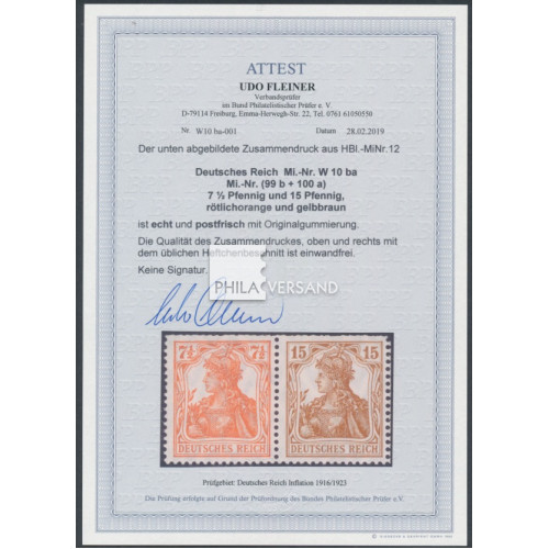Germania 1916 - 7 1/2+15Pfennig in horizontal combination, perfect mint quality and with certificate by Fleiner, BPP