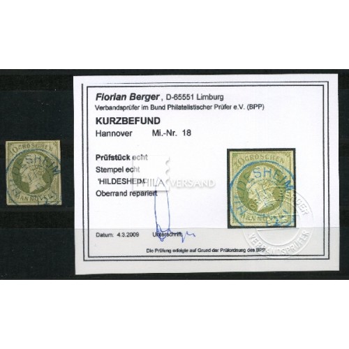 Hannover 1861 10 Gr. King George certificate - nice used stamp, certificate by Berger, BPP