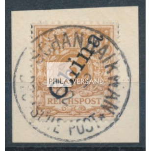 eagle 1902 - 3 Pfenig stamp in better color on small piece with perfect better postmark Schanhaikwan