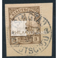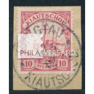 Yacht 1901 - 25 Pfennig in perfect used quality with perfect Tsingtau postmark on small piece, exper..