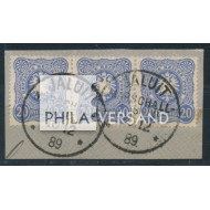 eagle 1890 - 20 Pfennig stamp in better color in a horizontal strip of three stamps, used as rare fo..
