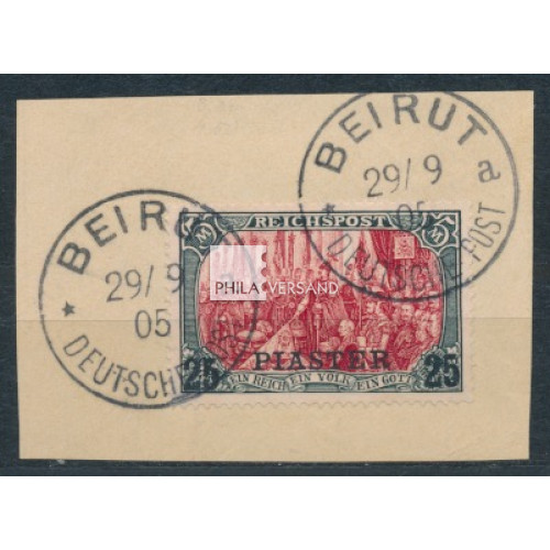 Reichspost 1900 - 5 Reichsmark in better type I / II and with on this type not known very rare plate variety "dot before L in VOLK " (only known on type II) in perfect used quality on piece and with certificate by Jäschke-Lantelme, BPP