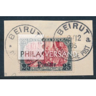 overprint 1905 - 25 Piaster overprint stamp in perfect used quality on piece with two very clean " B..