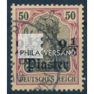 overprint stamp 1907 - 5 Piaster on 1 Mark with watermark, perfect used quality and with better Jaff..