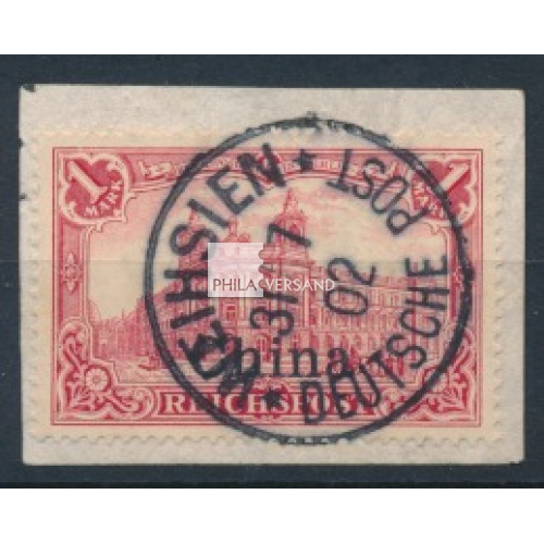 Reichspost 1901 - 1 Mark in very good used quality with very clean Weihsien postmark on small piece with Richter signature