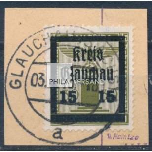 offical stamp 1945 - 15 on 30 Pfennig in perfect used quality on small piece and expertized by Dr. Penning, BPP