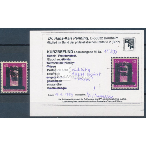 overprint 1945 - 40 Pfennig with double overprint, perfect mint never hinged quality and with certificate by Penning, BPP