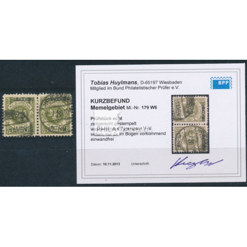 coat of arms + overprint 1923 - 3 C on 300 M in very good used quality, horizontal pair with the types V/III and with certificate by Huylmans, BPP