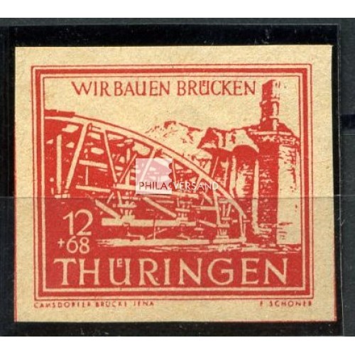 1946 12 Pfg. bridge - spot at right side near R in THÜRINGEN, expertized by Herpichböhm, BPP