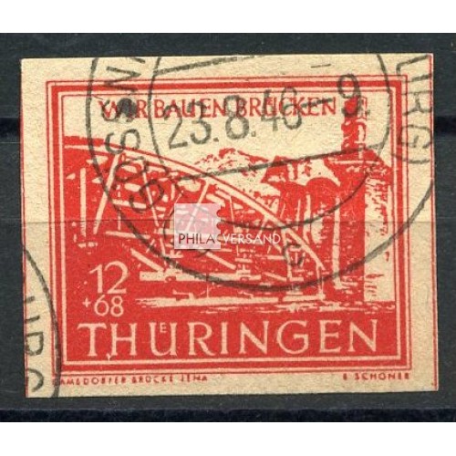 1946 12 Pfg. bridge - line left side at H in THÜRINGEN