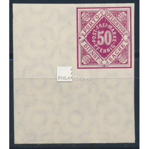 numeral 1911 - 50 Pfennig stamp as imperf. proof in perfect mint quality from left sheet corner, with small hinge in margin
