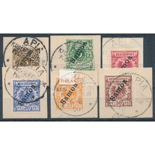 crown + eagle 1900 - perfect used quality and each stamp on small piece, Michel# 1-2 and 4-6 expertized by Jäschke-Lantelme, BPP, Michel# 3 expertized by Bothe, BPP