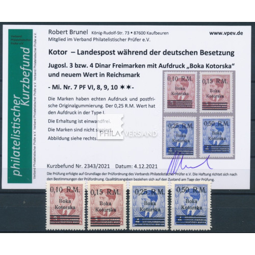 overprint 1944 - full set in perfect mint never hinged quality, the Michel# 7 with better overprint variety VI and with certificate by Brunel, VPEV for the issue