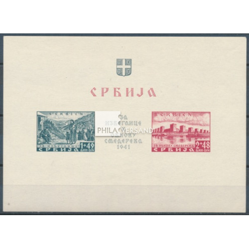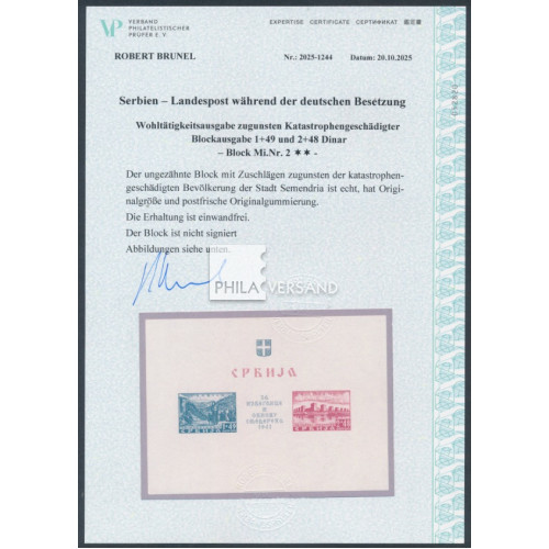 Semendria 1941 - imperforated souvenier sheet in perfect mint never hinged quality with full original gum and with certificate by Brunel, VPEV