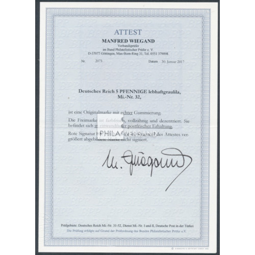 PFENNIGE 1875 - 5 Pfennige in perfect mint never hinged quality and with certificate by Wiegand, BPP