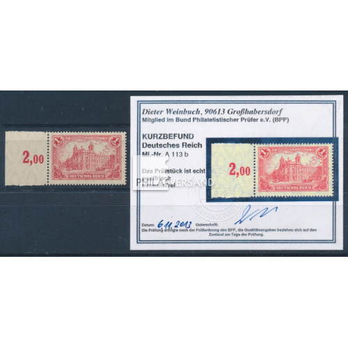 post-office 1920 - 1 Mark stamp in perfect mint never hinged quality without any signatures, better color and with margin, certificate by Weinbuch, BPP