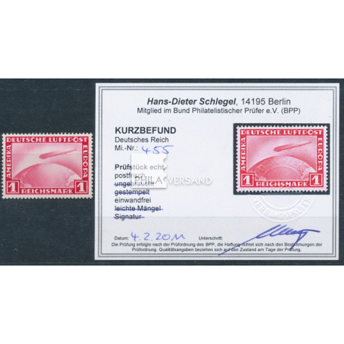 Zeppelin 1931 - 1 Mark stamp in perfect mint never hinged quality without any signatures and with certificate by Schlegel, BPP