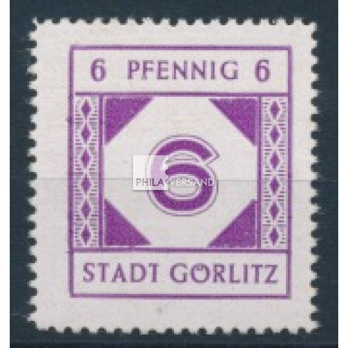 Görlitz numeral 1945 - 6 Pfennig stamp in better color, perfect mint never hinged quality with gum rippling and expertized by Dr. Arenz, BPP