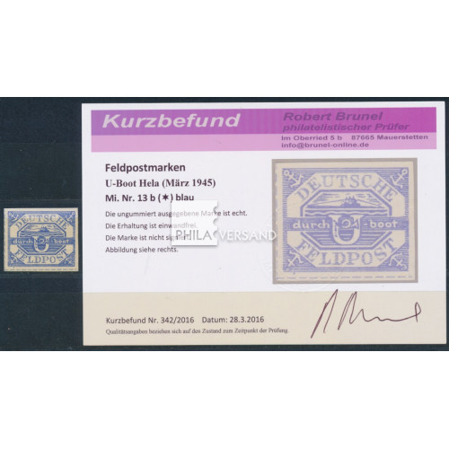 Hela submarine 1945 - as issued without gum in very good quality and without any signatures, certificate by Brunel