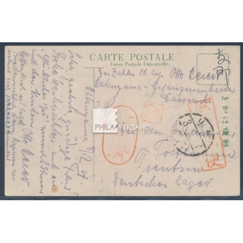 Matsuyama POW Camp 1914 - very early pow post from camp Matsuyama on ppc with great motif " The Kaminoyu Dogo Hot-Spring, Iyo " and with the both single marks for pow post and for the censorship (oval) with Matsuyama postmark 17.12.3 (1914) and HAN by Motomiya sent to the german camp to Tientsin, a very rare offer in perfect quality