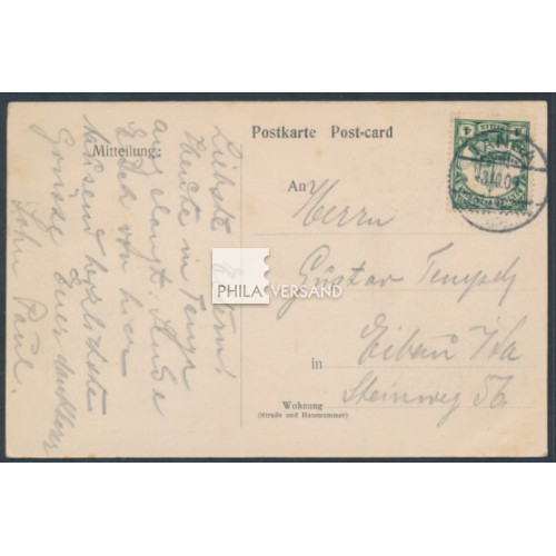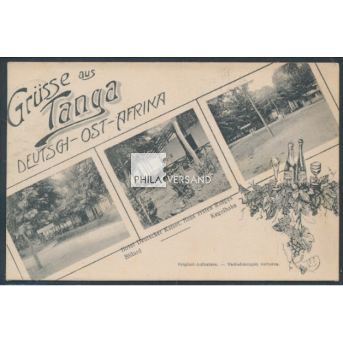 yacht 1909 - 4 Heller with watermark as single franking on better ppc with great motif " Grüsse aus Tanga. Hotel Deutscher Kaiser, ...." with very good readable postmark " Tanga 8.10.09 " sent with card text to Eibau, nearly perfect luxury quality