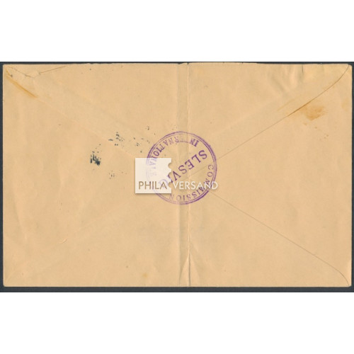 official stamp 1920 - 15 Pfennig coat of arms with CIS overprint and perfect centric postmark " Flensburg 12 4 20 " with code letter a and two large " Commission Internationale Slesvig " marks on cover, vertical fold in the cover, otherwise nearly perfect needs quality