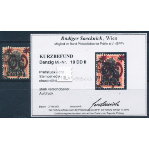 overprint stamp 1920 - 60 on 30 Pfennig with double overprint (one time lighter), perfect used quality and with certificate by Soecknick, BPP