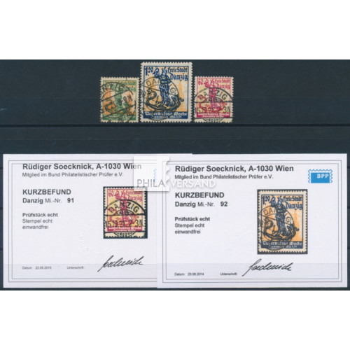 tuberkulosis 1922 - perfect used quality, Michel# 90 expertized by Gruber, BPP, Michel# 91 and 92 with certificates by Soecknick, BPP