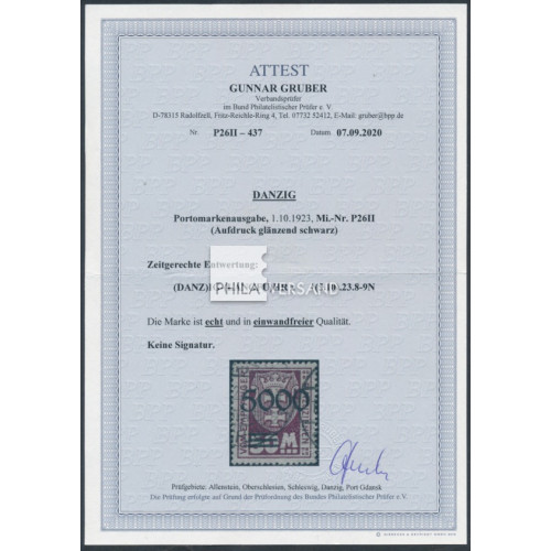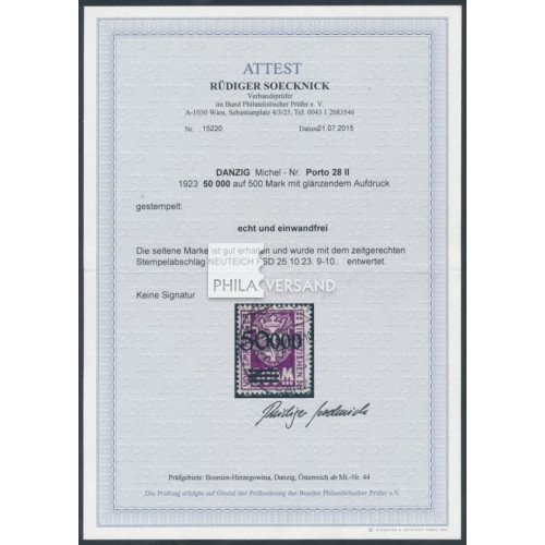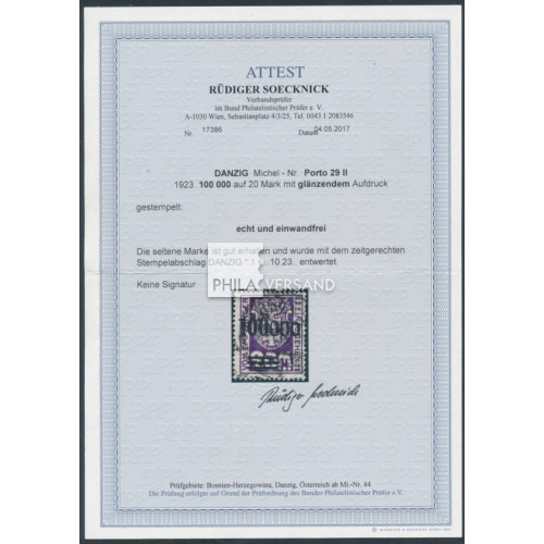 postage due overprint issue 1923 - perfect used quality with overprint type II, Michel# 27 expertized Kniep, BPP and with additional Infla Berlin signature, all other stamps with single BPP certificates from Soecknick, BPP or Gruber, BPP, in a full set a very rare offer